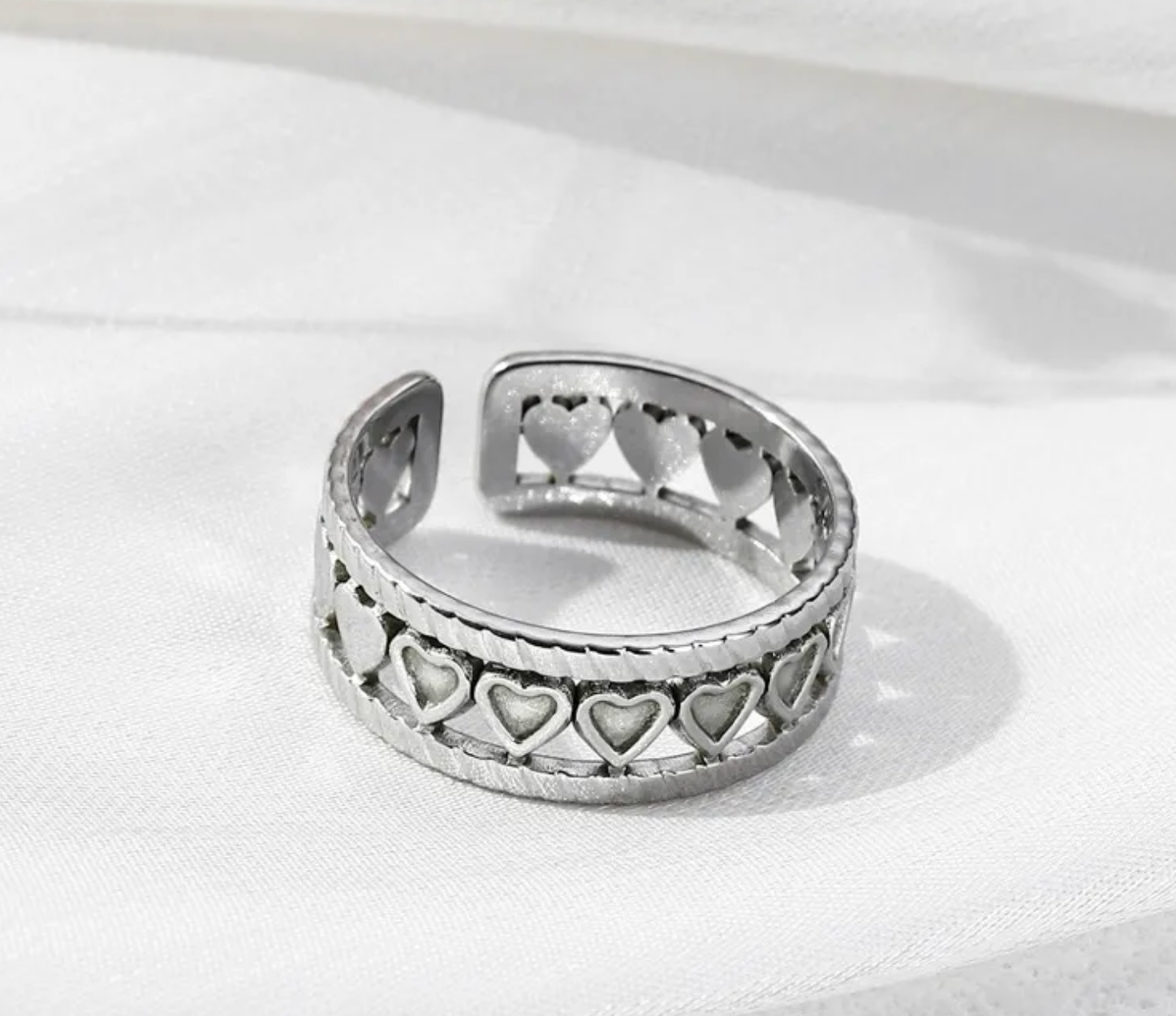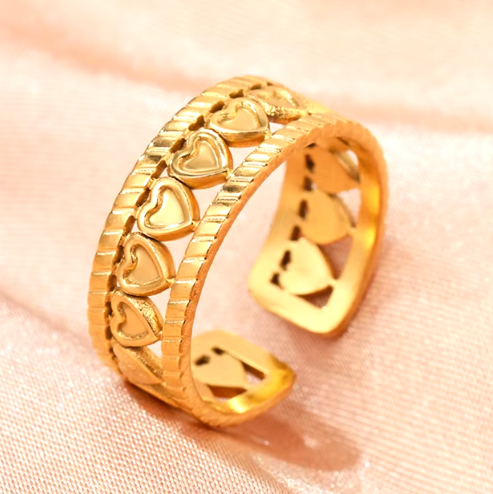 The Eternal is a symbol of enduring love and timeless elegance, crafted from high-quality stainless steel for both durability and style. Featuring delicate heart motifs, this adjustable ring offers a perfect fit for every wearer, making it a versatile and thoughtful accessory.
